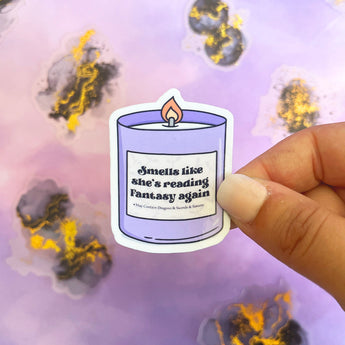 Plongez dans l’univers des lectrices passionnées avec notre sticker "Smells like she's reading fantasy again". Inspiré des bougies enchantées et des univers magiques, ce sticker est le clin d’œil parfait à toutes celles qui ne peuvent s’empêcher de replonger dans un bon roman fantasy. Parfait pour décorer votre liseuse, carnet ou bibliothèque.